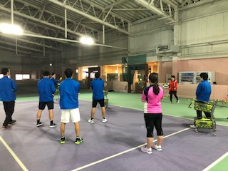 まずは、矯正法の練習でグループに分かれ世利さんのバックハンド、川野さんのボレーの矯正をしました!